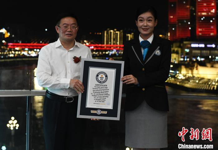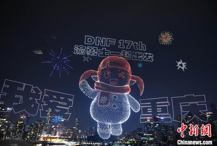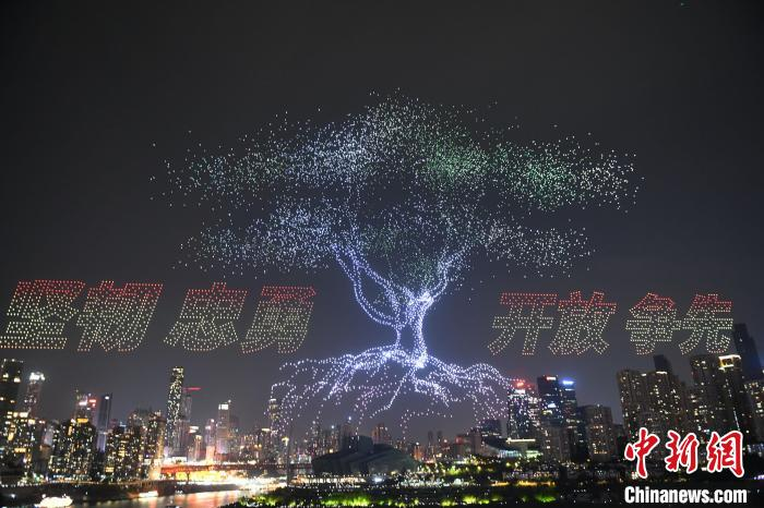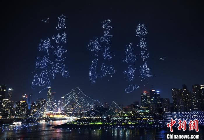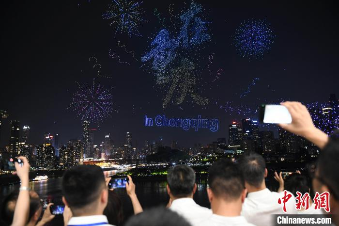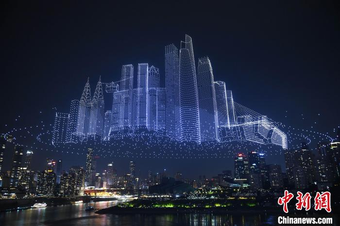 “魅力重庆”无人机灯光秀以11787架无人机组成的双编队飞行表演,成功挑战“最多无人机组成的空中图案”吉尼斯世界纪录