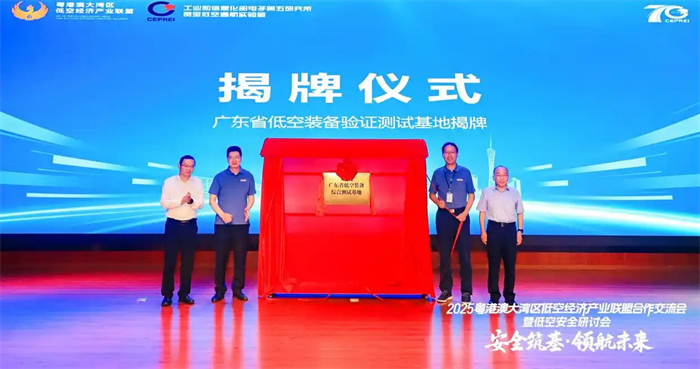 活动上,工业和信息化部电子第五研究所(下称“电子五所”)和广东省低空经济产业发展有限公司共同为广东省低空装备验证测试基地揭牌。该基地将重点开展低空装备技术验证、适航验证、标准制定与场景开发,为低空装备的研发、设计、制造和应用提供专业的验证测试平台,筑牢低空经济安全有序发展的技术根基。